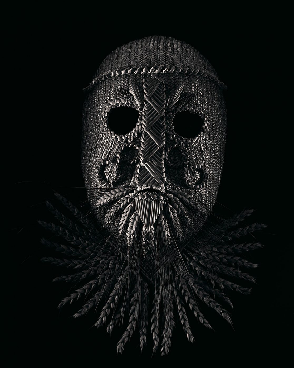Looming over the exhibition isa costumed figure, a physical manifestation of John Barleycorn created by the artist Matt Rowe with the aide of Carol Partridge, a member of the Guild of Straw Craftsmen. The mask and adornments to the costume are woven with heritage varieties of cereal crop. In both the beer and the body of John Barleycorn heritage strands of barley make an appearance, his contemporary presence crafted from a history of agricultural methods and folk traditions. Throughout the gallery the droning notes of a hurdy- gurdy infuse the space with local musician Mike Smith’s haunting version of John Barleycorn Must Die bringing a looming uncertainty to the traditional song and the surrounding artworks reflecting something of the precarious role of John Barleycorn in the contemporary era.