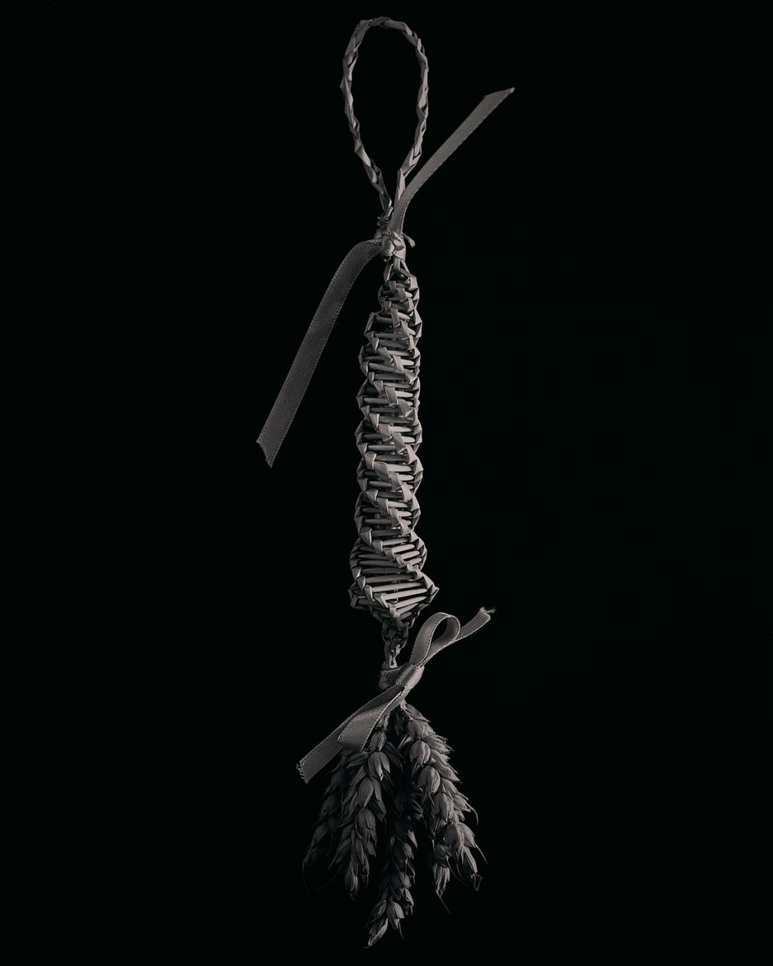Coincidentally, heritage varieties of cereal crop are also the prime material for contemporary strawcraft, most commonly Maris Widgeon wheat — a hollow, pale golden (almost white) straw with a long stem suited to weaving.